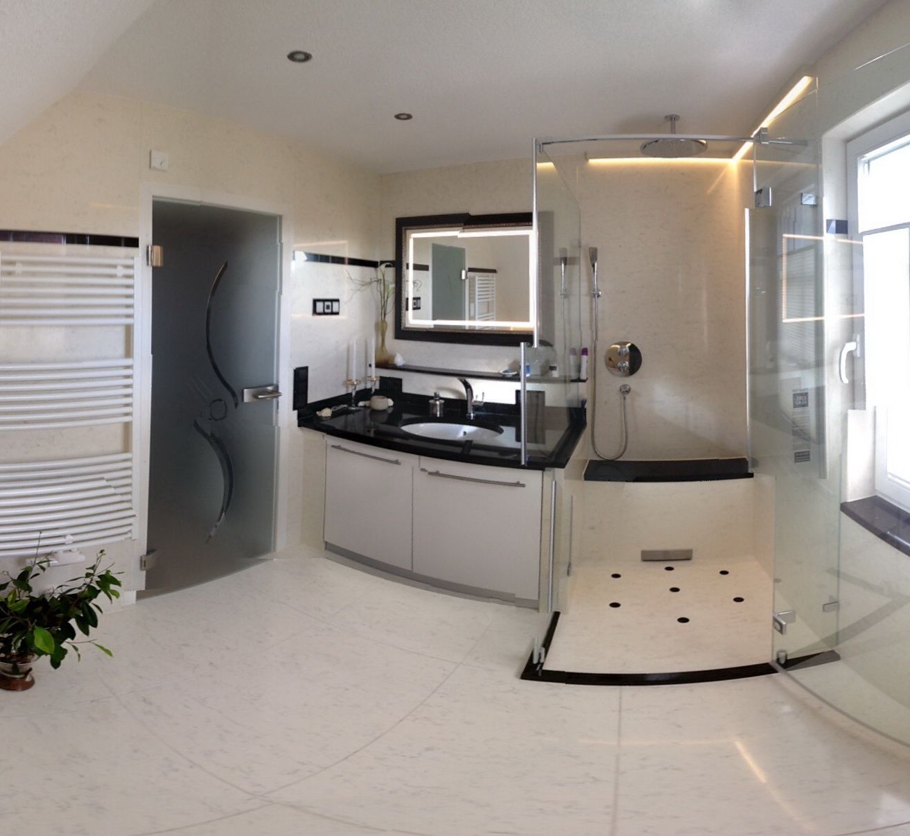 Badezimmer mit Marmor und Naturstein Oberflächen